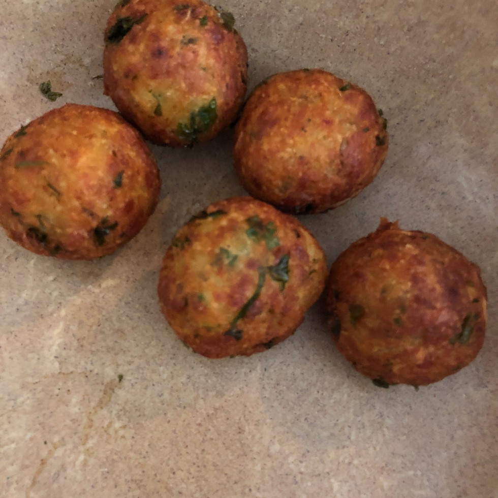 *Mix everything well with your hands and form a dough like round. Apply oil on both your clean hands and make golf ball sized koftas and fry them in hot oil till golden brown on all sides (see pics)Set aside to cool. *SLIDE FOR PICS